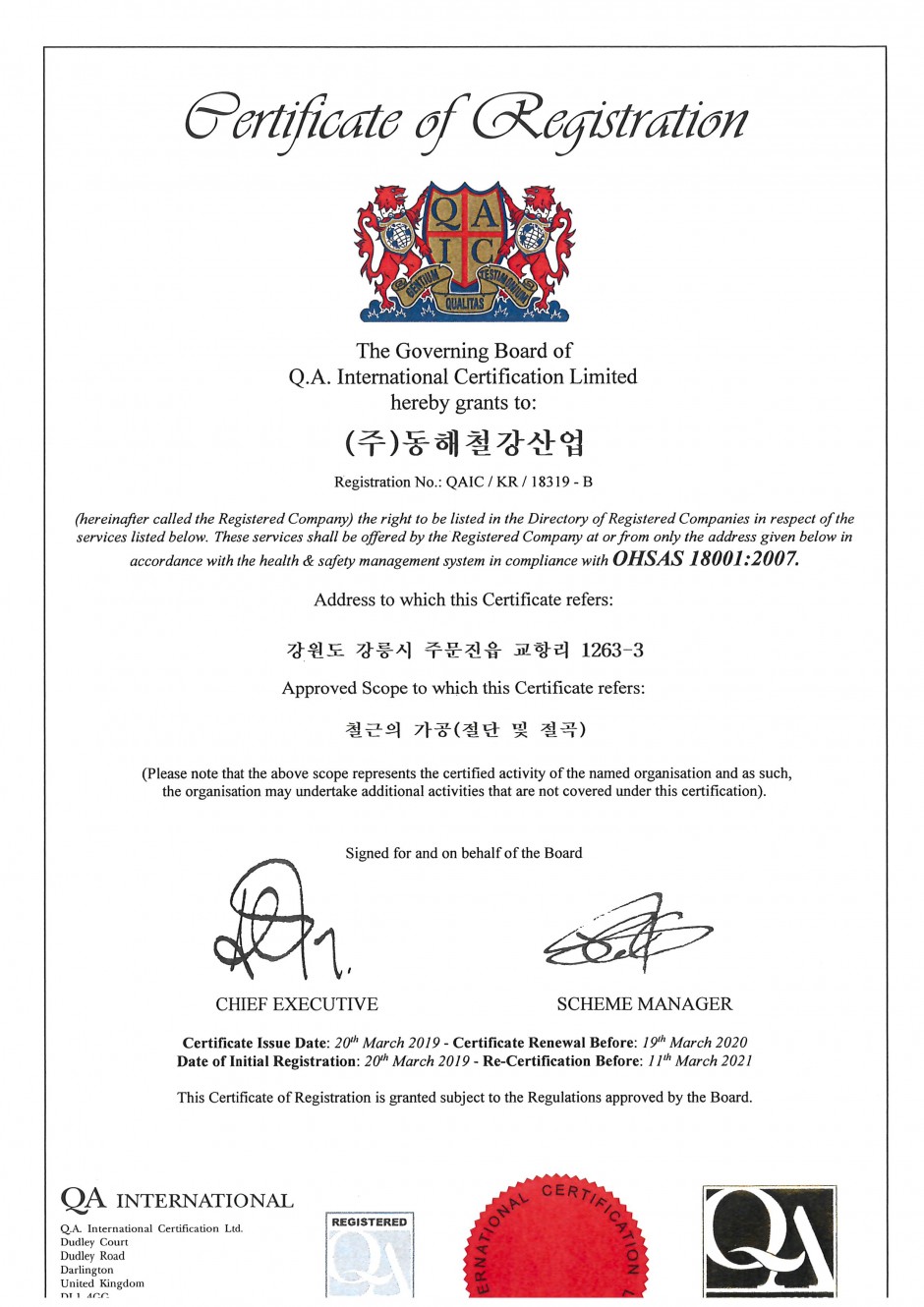OHSAS 18001 페이지 정보 작성자최고관리자 댓글 0건 조회 1,172회 작성일 19-07-10 11:29 본문 OHSAS 18001 목록 이전글ISO 14001 19.07.10